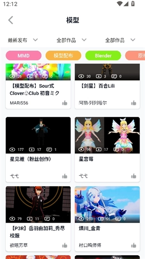 3、可以设置发布时间、作品类型等标签去筛选感兴趣的模型角色