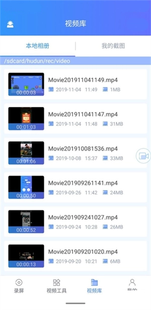 5、最后退出软件,首先点击底部的【视频库】选项,随后按照下图所示操作,就能查看所有录制的视频。