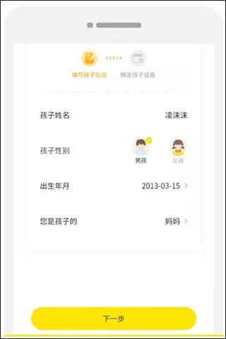打开家长端新建孩子信息