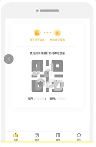 新建操作完成后,系统将自动生成孩子的绑定码以及账号密码,家长能够选择通过扫码登录,也可以选择使用账号密码登录。