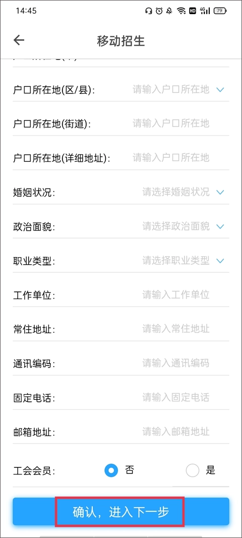 1、依旧在软件主界面,你既能够点击招生报名按钮,也能够通过点击“移动招生”快速切换到该页面。