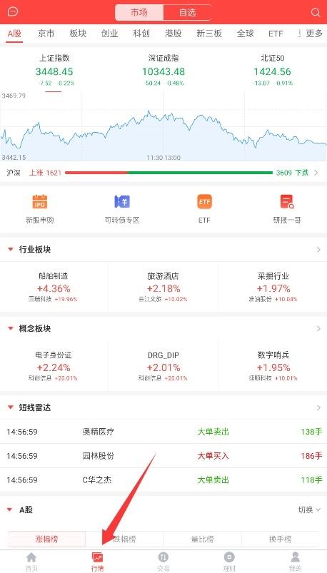 3、进入行情市场分析页面,查看实时的数据即可掌握当前投资盈利的状况。