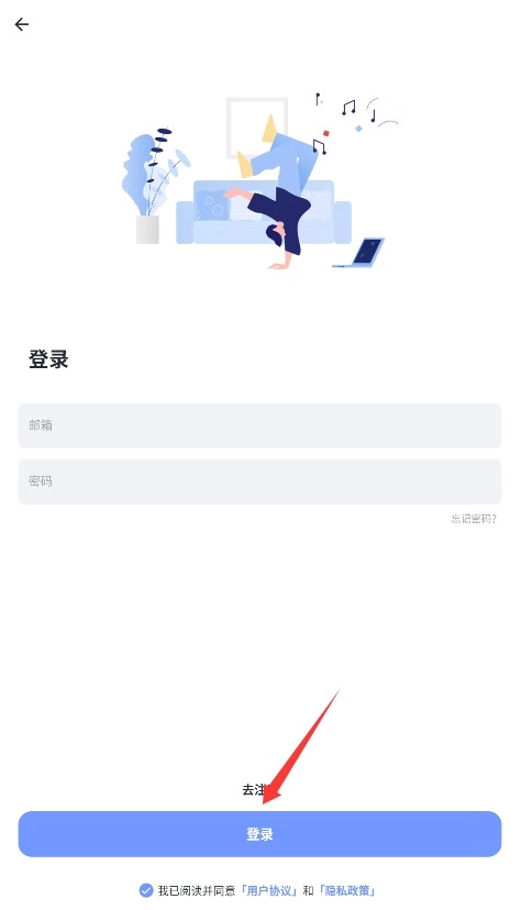 1. 开启应用,输入邮箱与登录密码,勾选同意用户协议,随后点击登录,进入主界面。