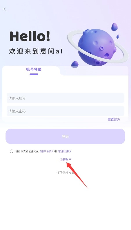 2、进入登录页面底部找到注册账户选项,点击后跳转至账号注册创建界面。
