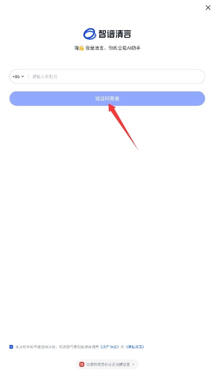 2、通过手机号接收验证码完成登录验证,勾选同意相关条款后进入智能对话页面。