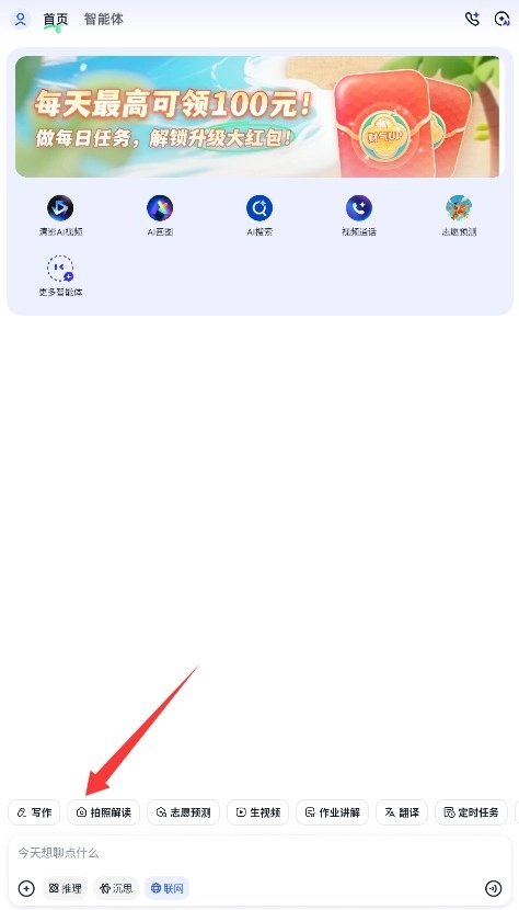 3、在底部输入框键入您的问题内容,点击发送即可获取AI智能生成的详细解答。