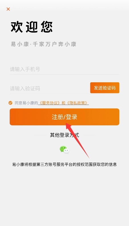 1. 打开应用,输入手机号码获取验证码,填写验证信息,同意用户协议,完成登录。