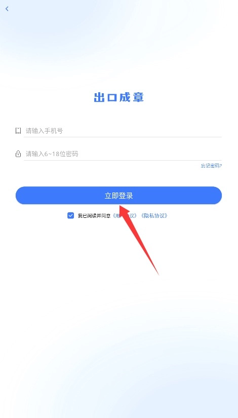 3、返回登录界面输入手机号和密码,勾选协议后点击立即登录即可进入应用主界面。