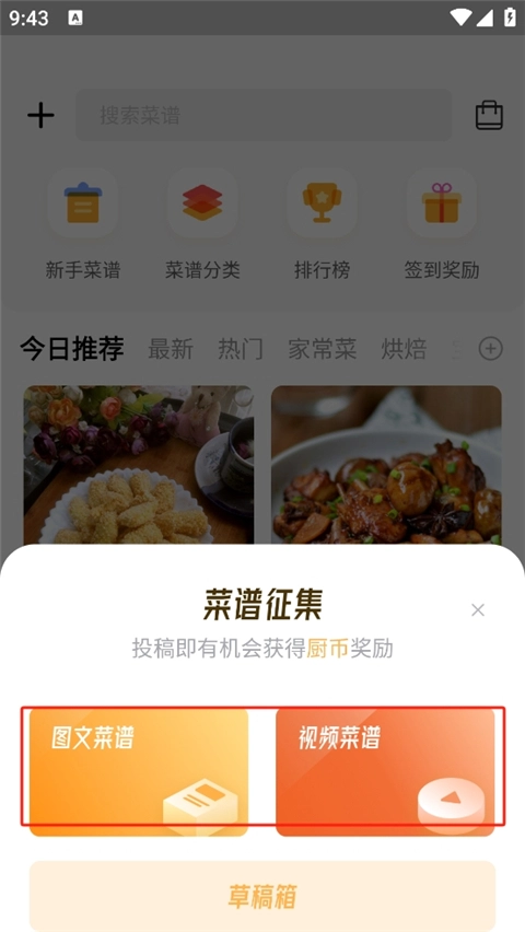 2、选择图文菜谱或者是视频菜谱。