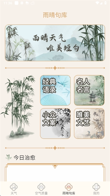 5、用户也能够进入“雨晴句库”,获取各式各样的精选语句。