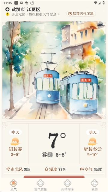 3、语音播报天气:优美语音自动读天气,听一听也能掌握出门信息。
