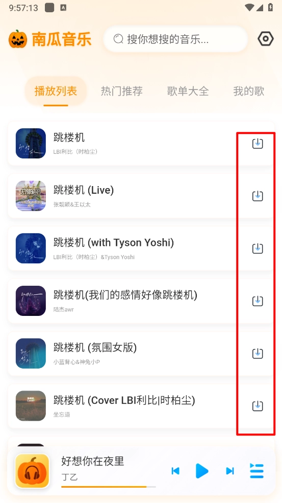 3、涵盖多个音乐版本的资源,点击所需下载歌曲的右边"下载"图标。