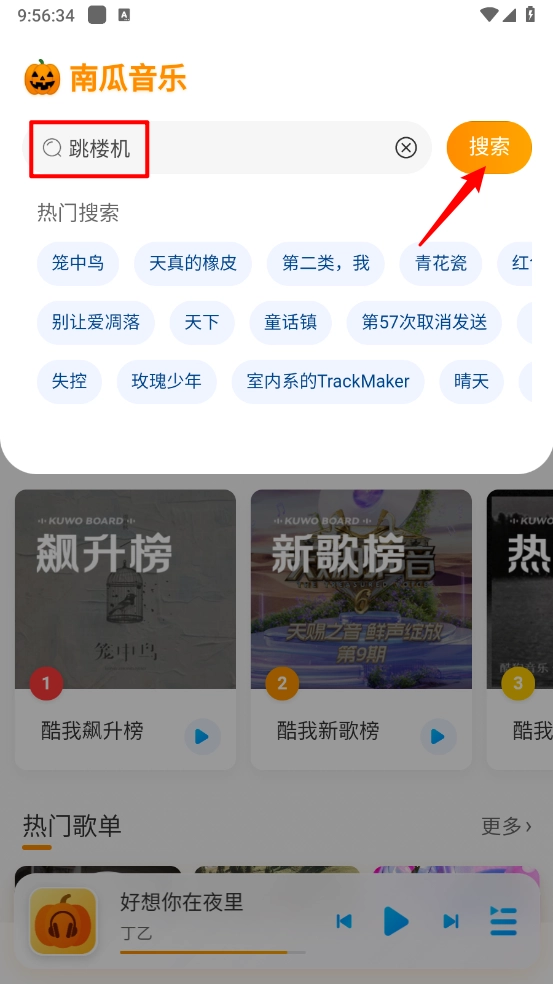 1. 先下载并安装南瓜音乐app,安装完成后进入其主页,接着点击页面上方的搜索框。