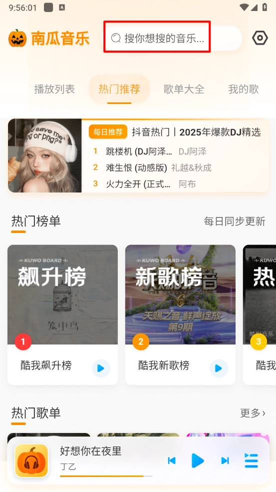 歌单自由管理:可创建、编辑专属歌单,还能导入其他平台的歌单,随时整理自己的音乐库。