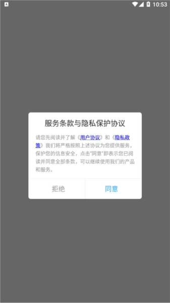 1、下载安装软件后打开,点击同意服务条款与隐私保护协议。
