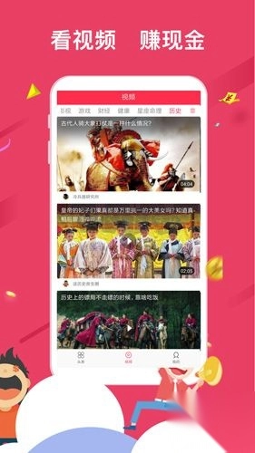 2、视频赚——边看边领金币:汇集时下头条视频资讯,搞笑视频、美女帅哥、明星八卦、热门综艺、社会热点、各种长短视频让你目不转睛。众多精彩视频完爆抖音短视频、视频之多绝不亚于西瓜视频、腾讯视频、优酷视频等国内主流视频平台。