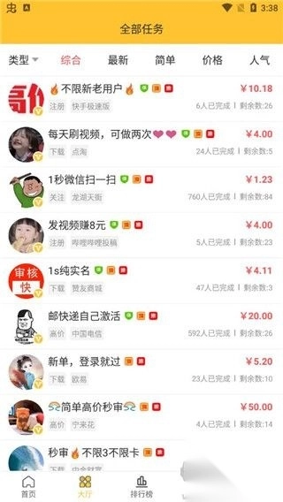 基于用户画像精准推送高匹配任务,新手也能轻松日赚50+元。任务大厅实时刷新,支持按收益/难度/耗时等多维度智能排序。