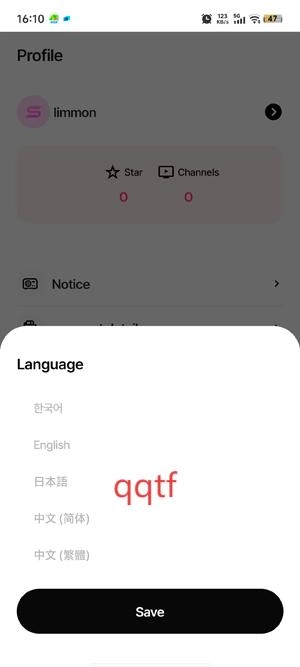 在我的界面点击语言功能。