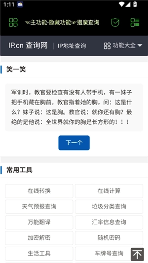 2. 实用工具:多种实用小工具,如公司转换、货币汇率、身份证号码查询等,满足用户在不同场景下的需求。