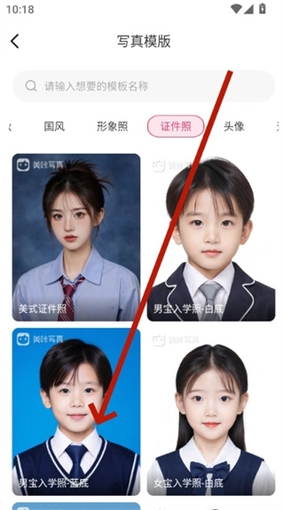 3、用户可以根据年龄以及需要的证件照风格,选择合适的模版使用。