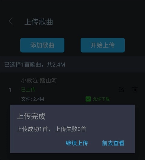2、选择需要上传的歌曲,下方点击确认;