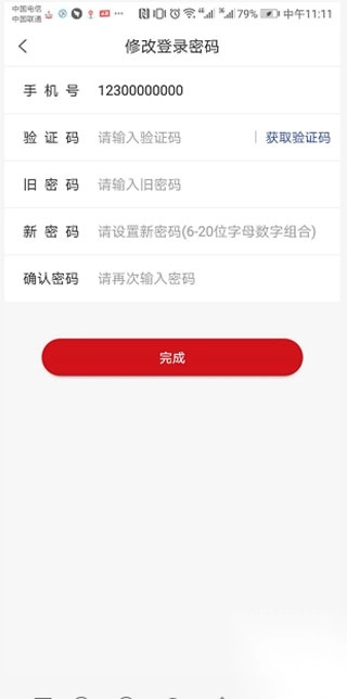 修改登录密码时,只需通过验证手机验证码与旧密码,便可完成登录密码的修改。