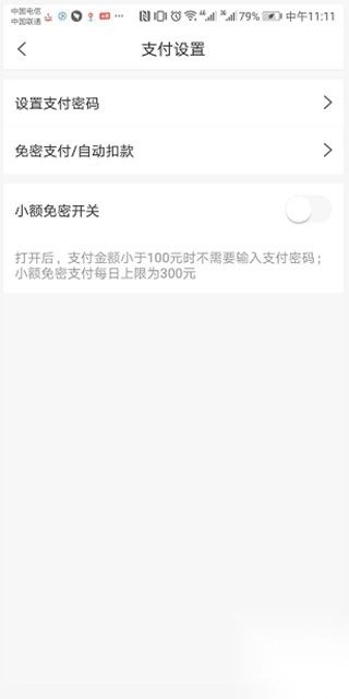 1、支付设置,可设置支付密码、开通免密支付;未设置支付密码的用户设置支付密码,只需通过手机号获取验证码验证即可设置;已设置过支付密码的用户修改支付密码,需要通过手机号获取验证码验证和验证原支付密码,才可完成新支付密码的设置。