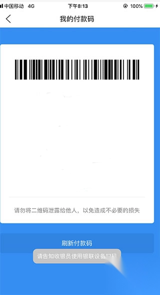 2、在登录 APP 之后,通过出示付款码来完成支付。