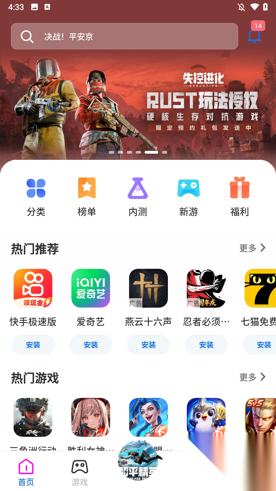 1、游戏专区:汇聚海量热门、精品游戏,支持一键下载、安装与更新,专为游戏爱好者打造。