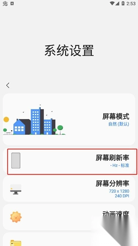 2、进入菜单后,选择“屏幕刷新率”这一项。