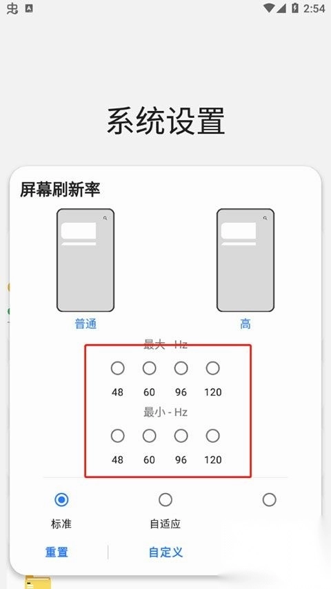 3、依据手机所支持的规格,能够在48Hz、60Hz、96Hz或120Hz等不同档位中进行选择。