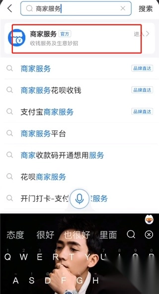 1. 开启支付宝商户版应用程序,于搜索框内查找商家服务。