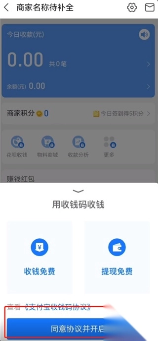 2、点击商家服务,进入平台后选择同意协议并开启;