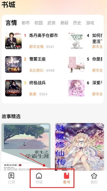 2、在“书城”页面,有着丰富的小说资源,涵盖言情、科幻、武侠等多种类型。