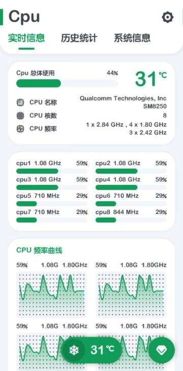 2、你瞧,CPU的实时信息呈现得明明白白,像CPU信息、CPU频率以及CPU温度,都清晰可见。