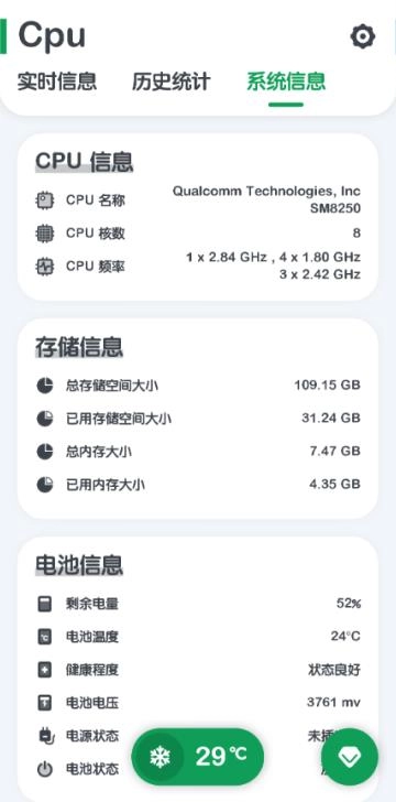 桌面悬浮窗口与状态栏悬浮窗口能实时展示CPU温度、电池温度以及内存利用率。这两种悬浮窗口功能强大且使用便捷,若你有需求,还可读取实时信息。