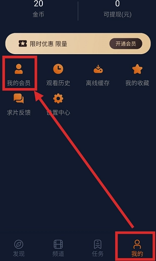 3. 当攒足金币之后,点击【我的】——【我的会员】