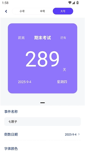 2. 点击首页的倒数日,在此处挑选表盘尺寸。