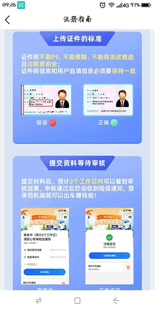 提交资料后,预计2个工作日内便能知晓审核结果。一旦审核通过,您将会收到短信通知,届时登录司机端,就能够出车赚钱啦。
