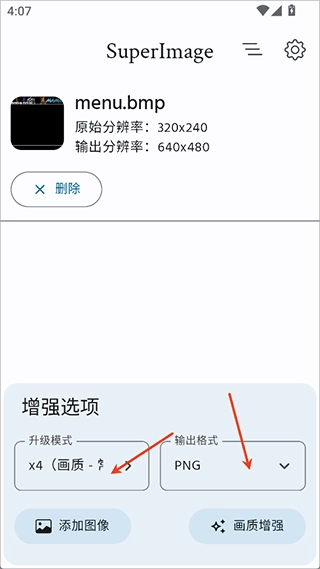 3、需依据自身手机配置来挑选画质,高配置手机可选择较高画质,随后点击【画质增强】对画质进行处理。