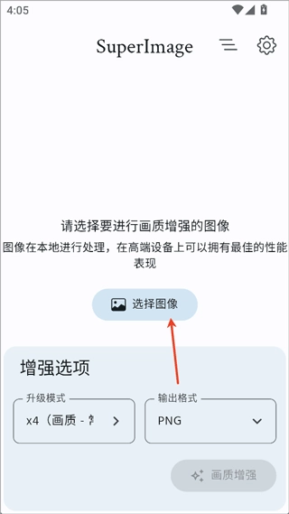 1、打开SuperImage应用程序后,点击【选择图像】选项。