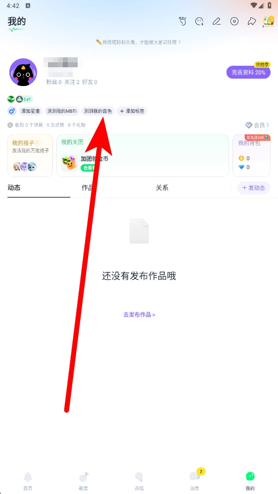 3、个性化展示空间:每个用户都有自己独一无二的音乐主页,在这里能够展示个人演唱作品以及收藏的歌单。同时,借助数据统计与等级系统,完整记录个人在音乐领域的成长轨迹。