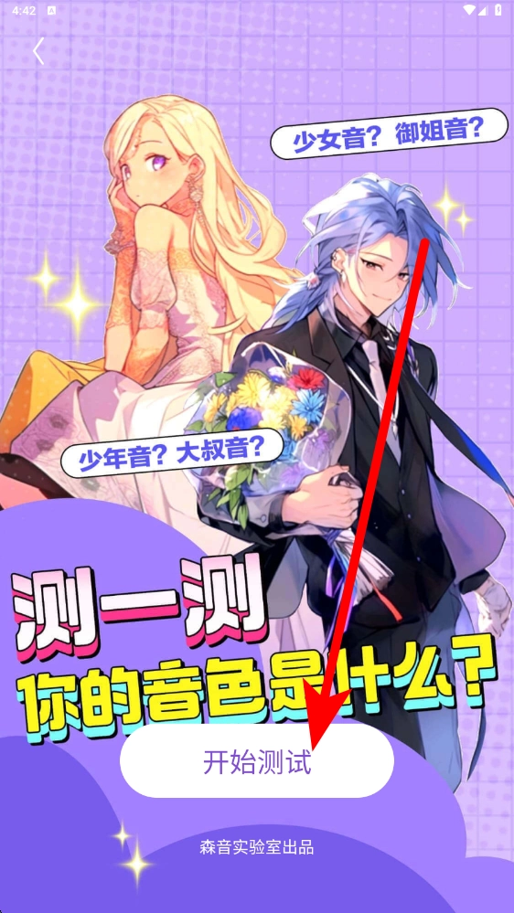 3、轻点“开始测试”按钮,就能知晓自己的音色类型,尽情体验测音色的乐趣。