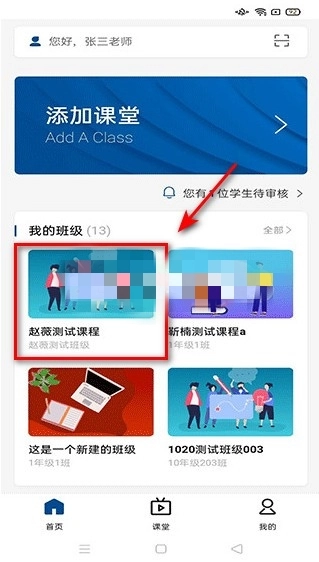 2. 当您进入主页后,便能瞧见课堂与班级信息,此时请点击【添加课程】。