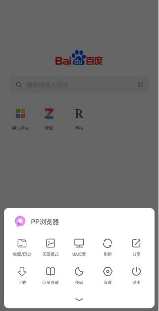 1、先下载并安装PP浏览器,安装完成后打开该软件的主页。