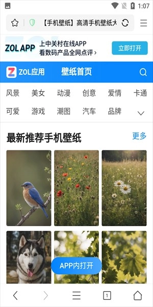 4、回到主页,点击壁纸,就能看到许多好看的壁纸。
