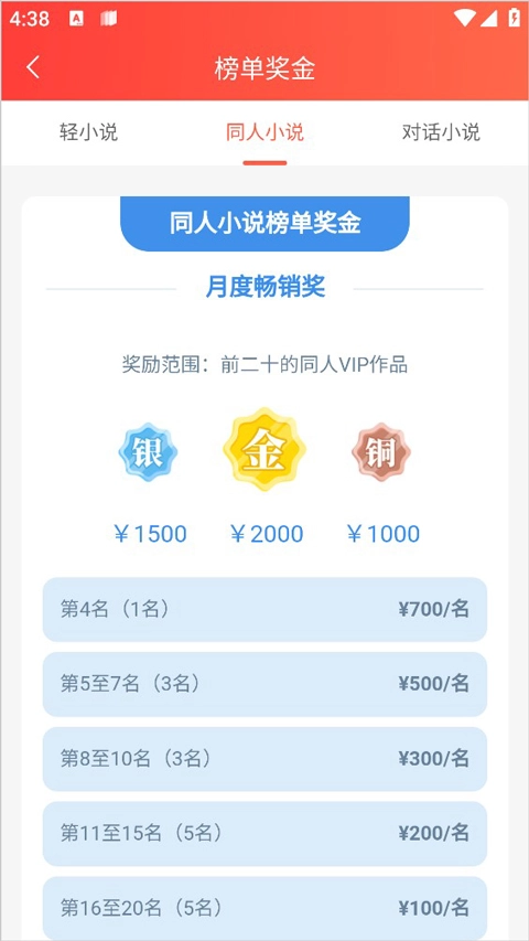 满足条件的同人小说签约作品,每月能够获取300元的全勤奖。