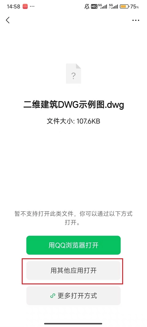 2、参照图示,点击红框中的“用其他应用打开”。