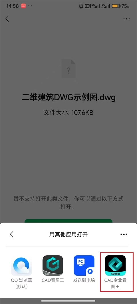 3、如图片所示,点击开启CAD专业看图王软件。