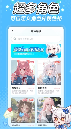 1、角色自由切换:100+预置二次元角色,一键切换不同对话风格。